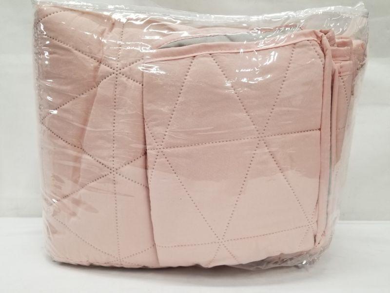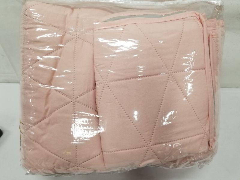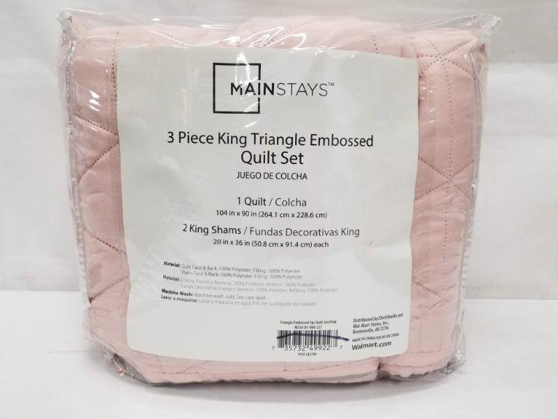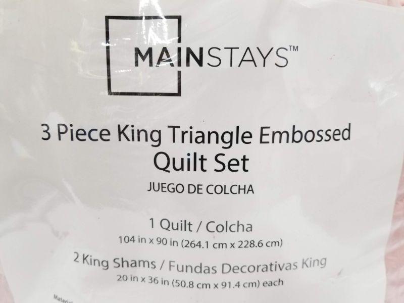 Mainstays 3 Piece King Triangle Embossed Quilt Set - Pink/Gray - New