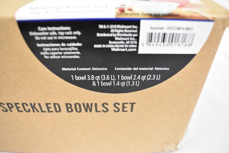 Mainstays 3 Piece Speckled Melamine Mixing Bowl Set - New