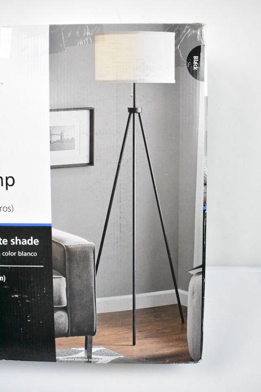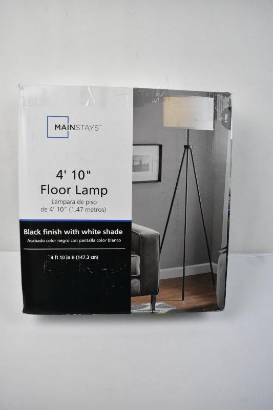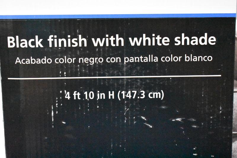 Mainstays 4' 10" Floor Lamp, Black Finish with White Shade - New
