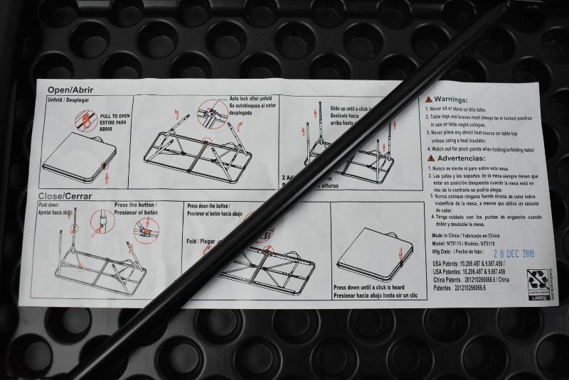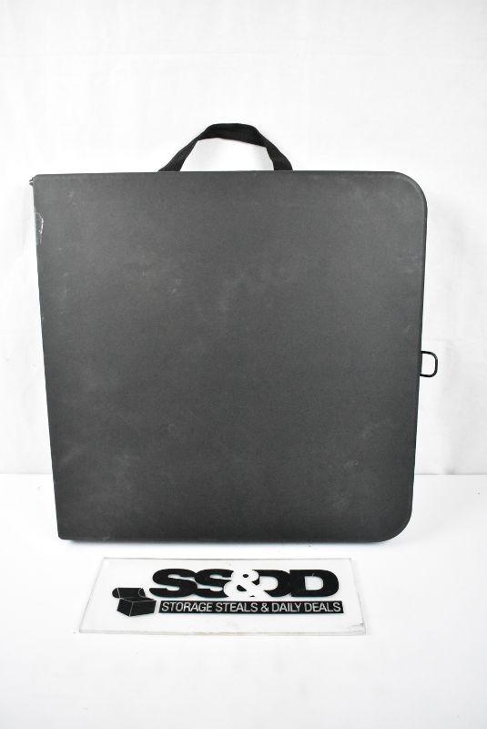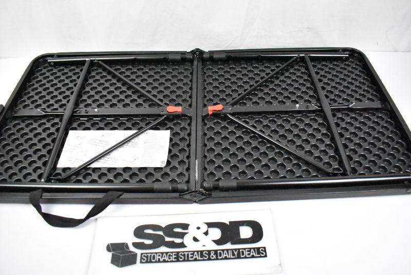 Mainstays 40" Plastic Adjustable Height Fold-in-Half Folding Table, Rich Black. Scratched
