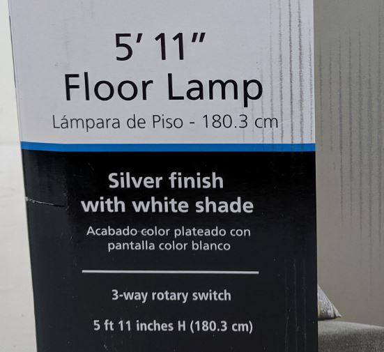 Mainstays 5' 11'' Floor Lamp, Silver, White Shade - New