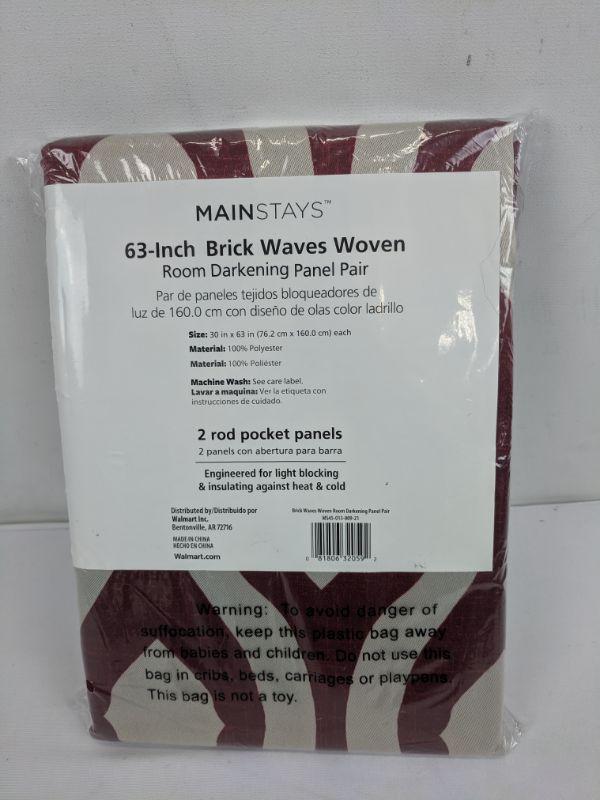 Mainstays 63" Brick Waves Woven Room Darkening Panel Pair - New