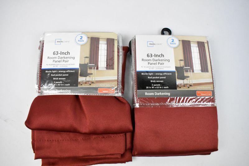 Mainstays 63" Room Darkening Panels, 2 Pairs (4 Total) 30" x 63" Brick Woven - New