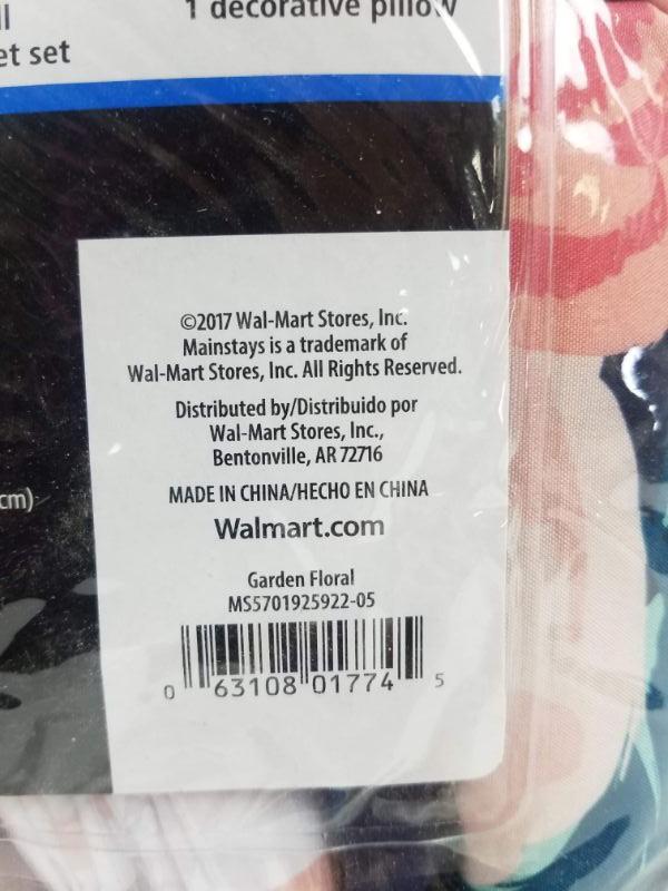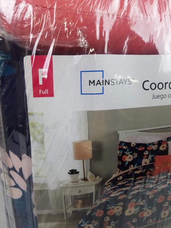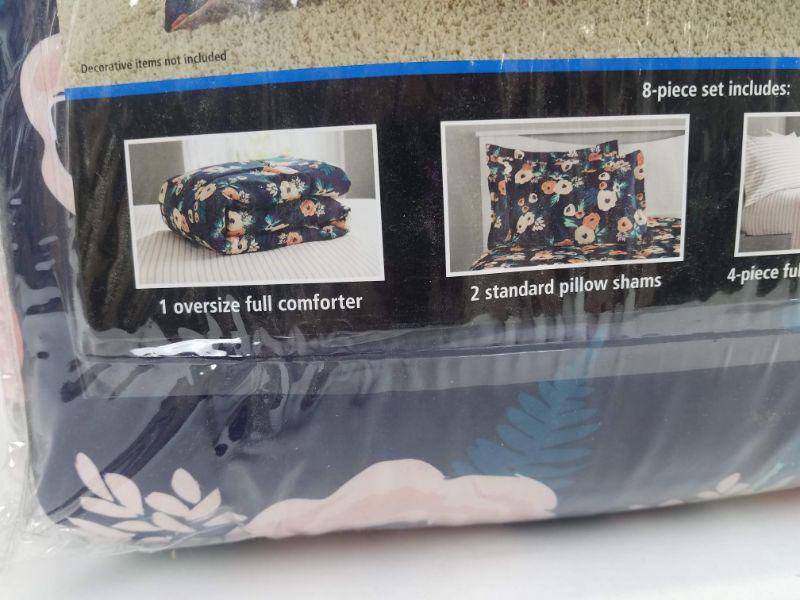 Mainstays 8 piece Coordinated Bed Set Full Size, Navy/Pink "Garden Floral" - New