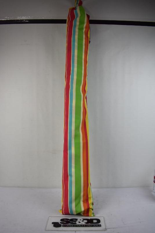 Mainstays 9' Outdoor Market Umbrella, Striped. Warehouse Dirt on Outside Bag, Retail $40, Umbrella New