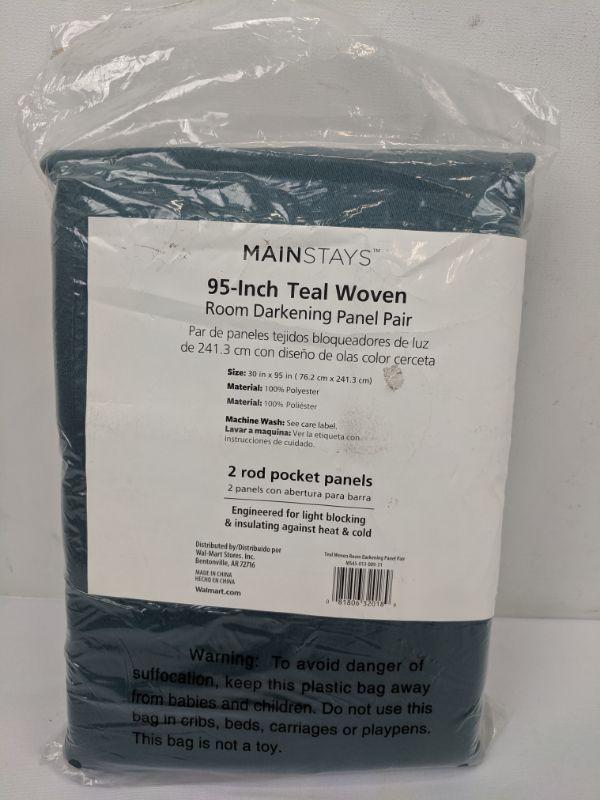 Mainstays 95" Teal Woven Room Darkening Panel Pair, Teal, 30" x 95" - New