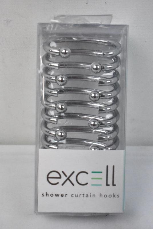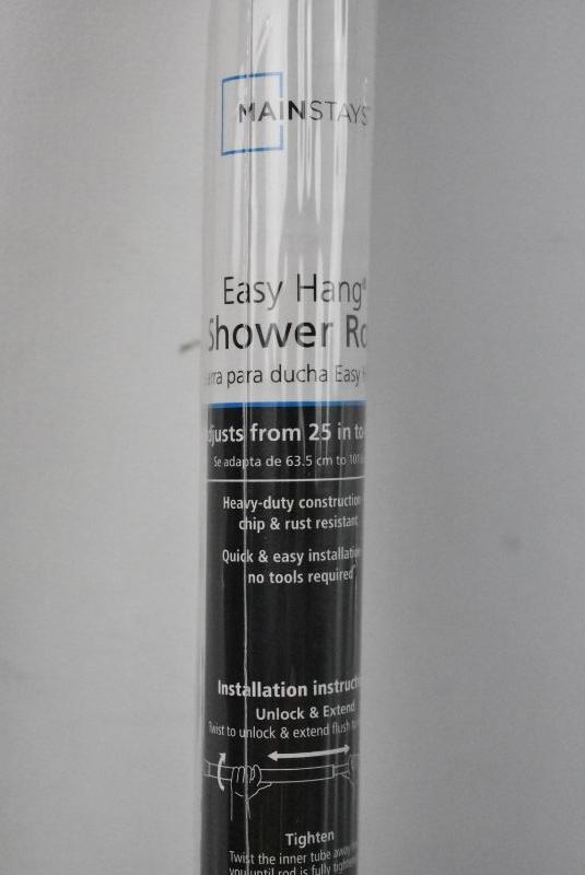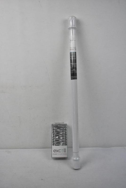 Mainstays Adjustable 40" Shower Curtain Tension Rod & Excell Shower Curtain Hooks - New