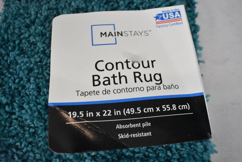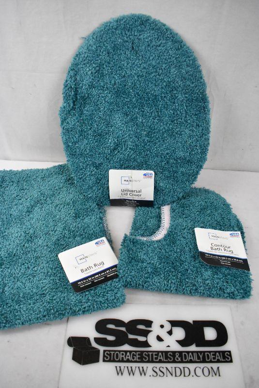 Mainstays Basic Bath Rug 3 Piece Set, Turquoise Sky, 19.5" x 32" Mat, 19.5" x 22" Contour, & Lid Cover - New