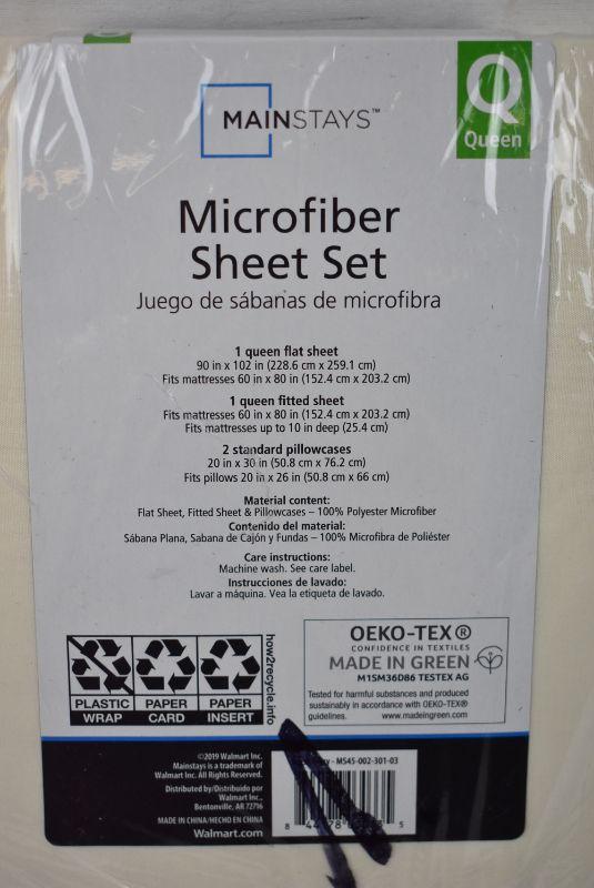 Mainstays Basic Microfiber Queen Ivory Sheet Set - New