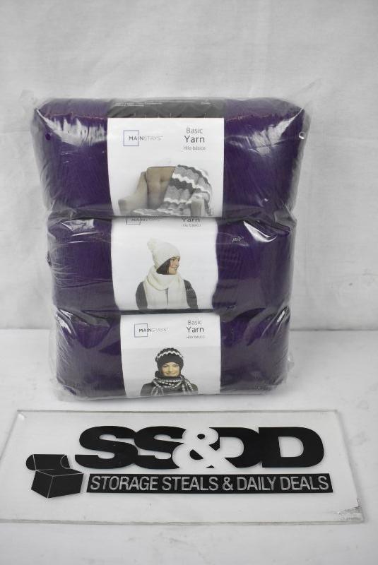 Mainstays Basic Yarn, Purple. 3 Skeins, 7 oz each - New