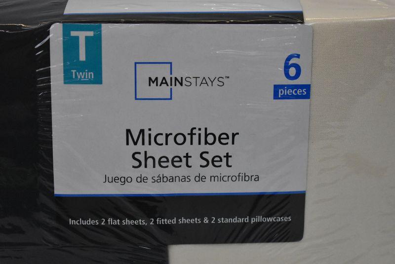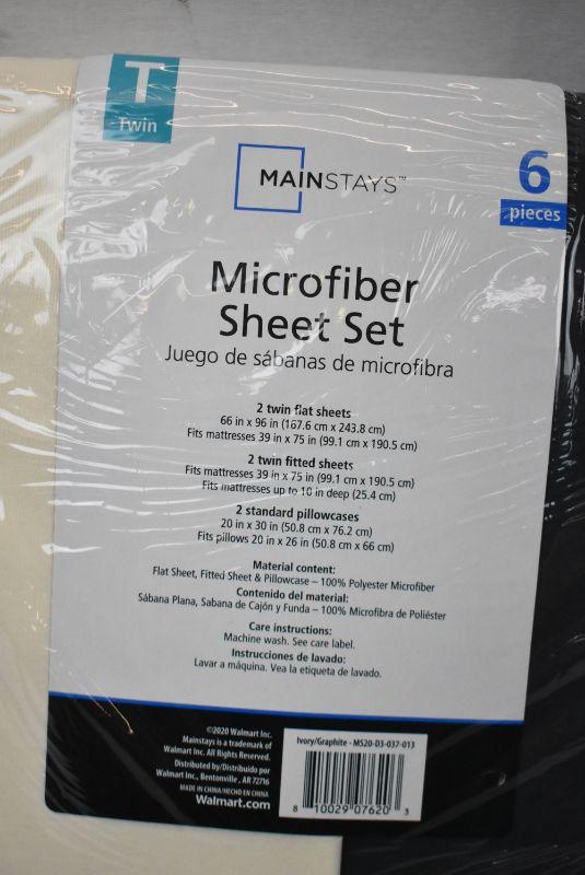Mainstays Basics Microfiber Ivory and Graphite 2 pack Twin Sheet Set - New