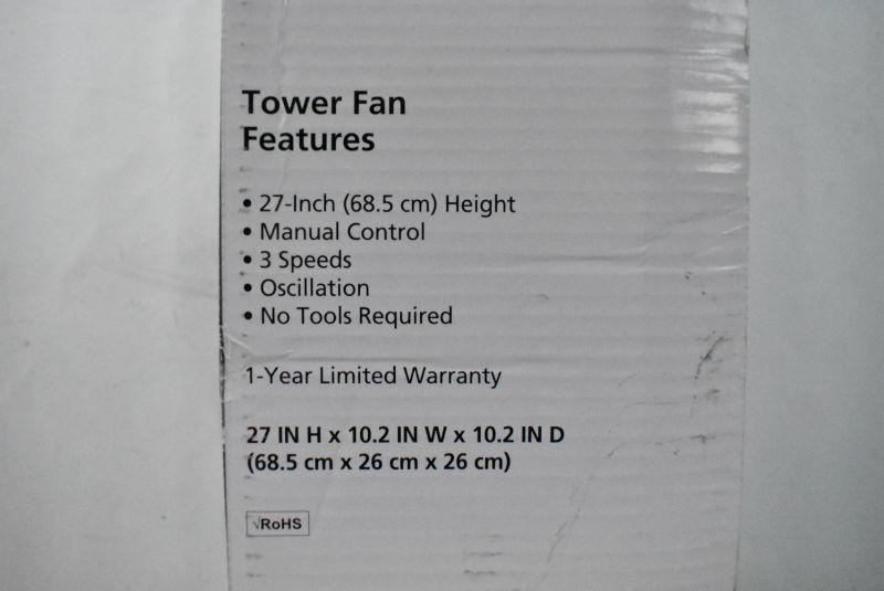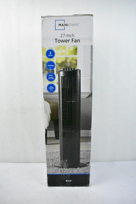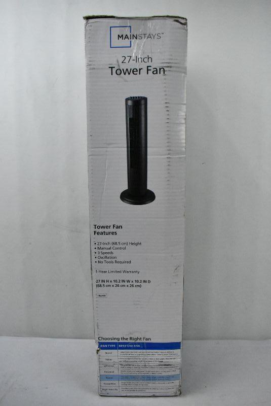 Mainstays Black 27" Oscillating Tower Fan - New, Open Box