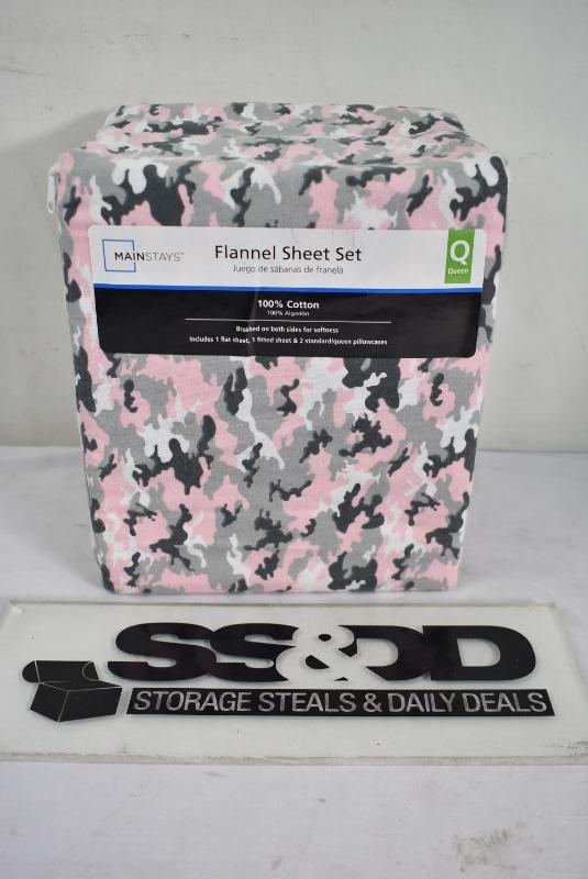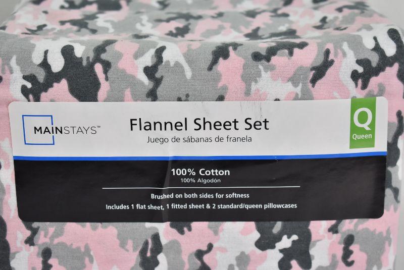 Mainstays Camouflage 155 GSM, 100% Cotton, Flannel Sheet Set, Pink, Queen, $25 Retail - New