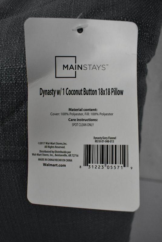 Mainstays Dynasty Coconut Button Accent Decorative Throw Pillow, 18" x 18", Gray Flannel - New