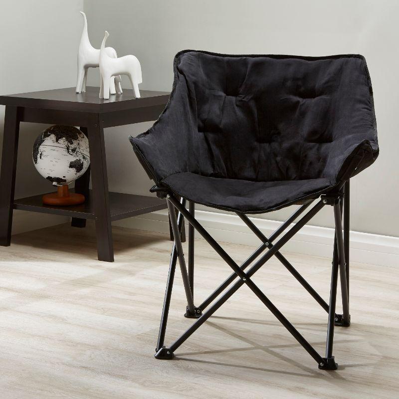 Mainstays Collapsible Square Chair, Black Microsuede - New
