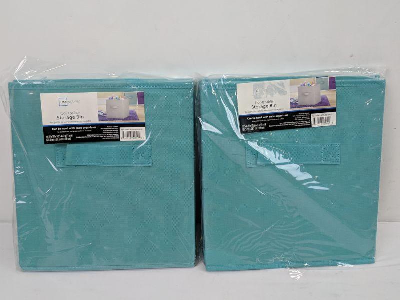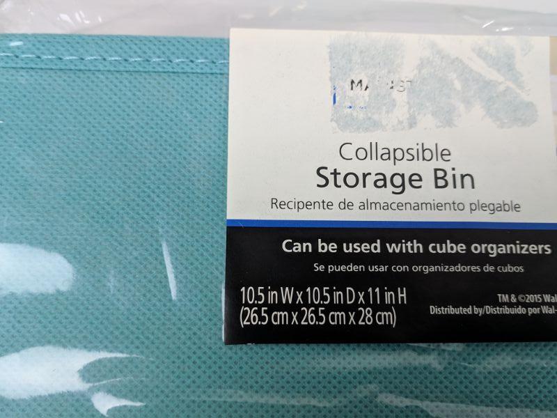Mainstays Collapsible Storage Bin, Teal, Two Pack - New