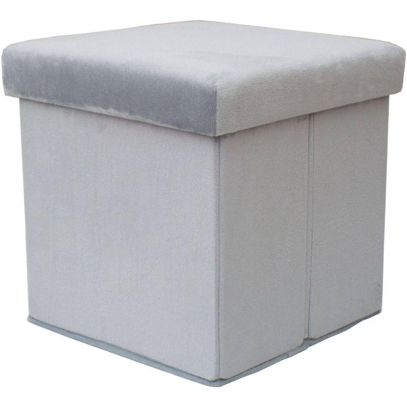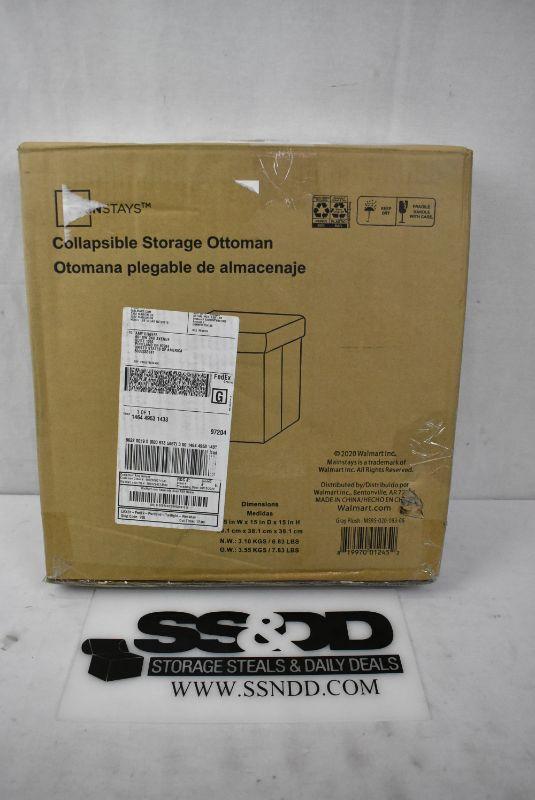 Mainstays Collapsible Storage Ottoman, Gray Plush - New