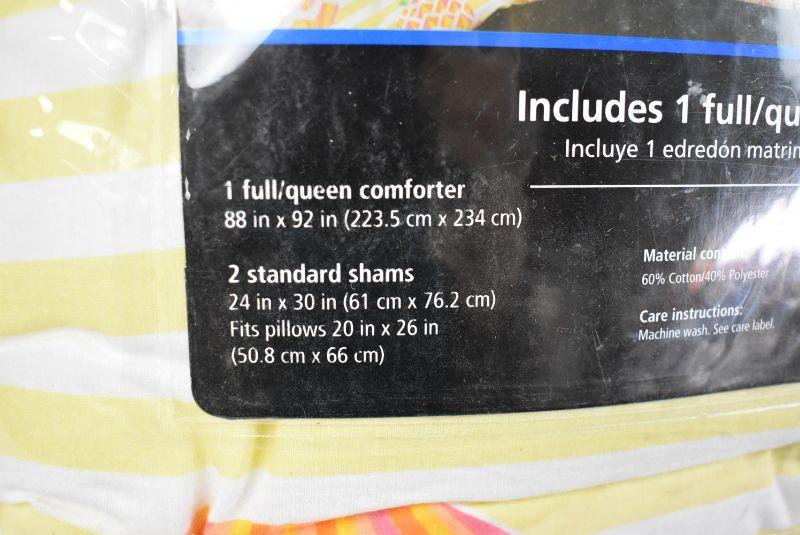 Mainstays Comforter Set. 3 pcs size Full/Queen Yellow Stripes & Pineapples - New