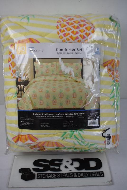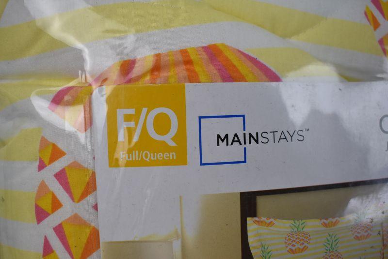 Mainstays Comforter Set. 3 pcs size Full/Queen Pipper Yellow Stripes & Pineapples - New