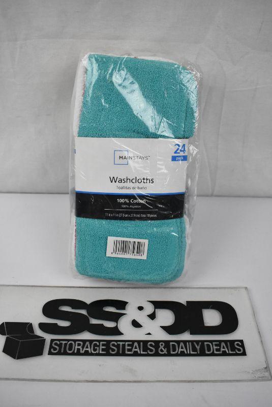 Mainstays Cotton Washcloth Bundle Collection 24 pack Primary - New