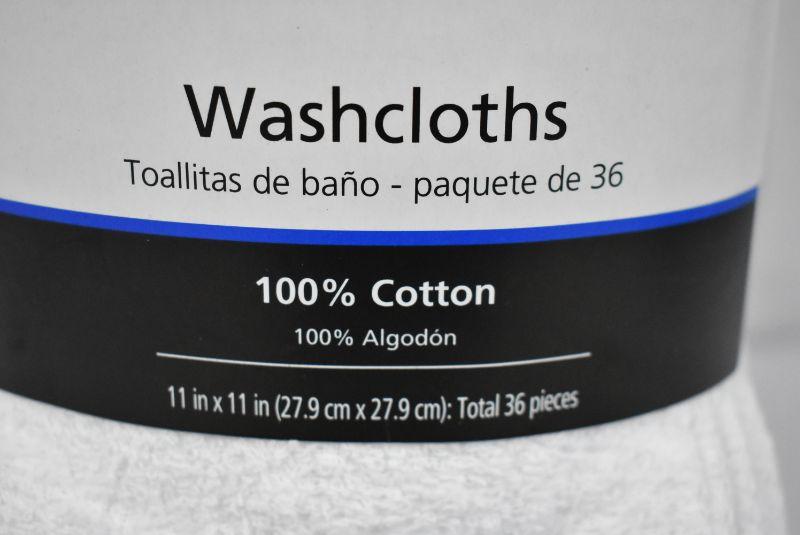 Mainstays Cotton Washcloth Collection, 36-Pack, White - New