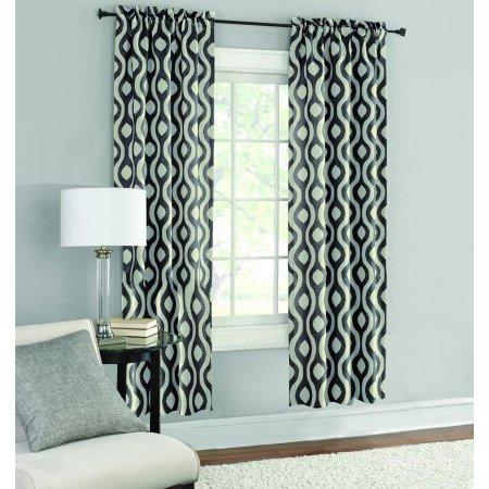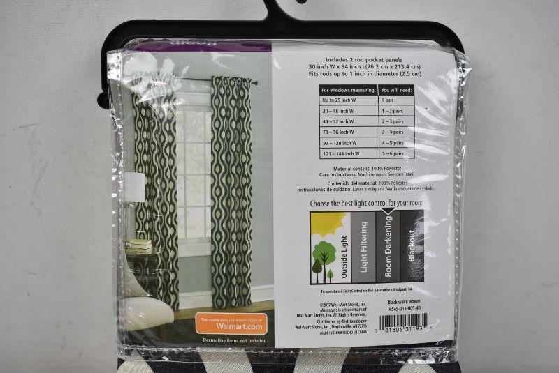 Mainstays Thermal Wave Print Room Darkening Window Curtain Panel Pair, Black Wave Woven, 30" x 84" Each - New