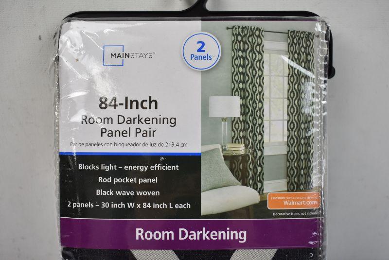 Mainstays Darkening Window Panel Pair, Black Woven, 30" x 84" Each - New