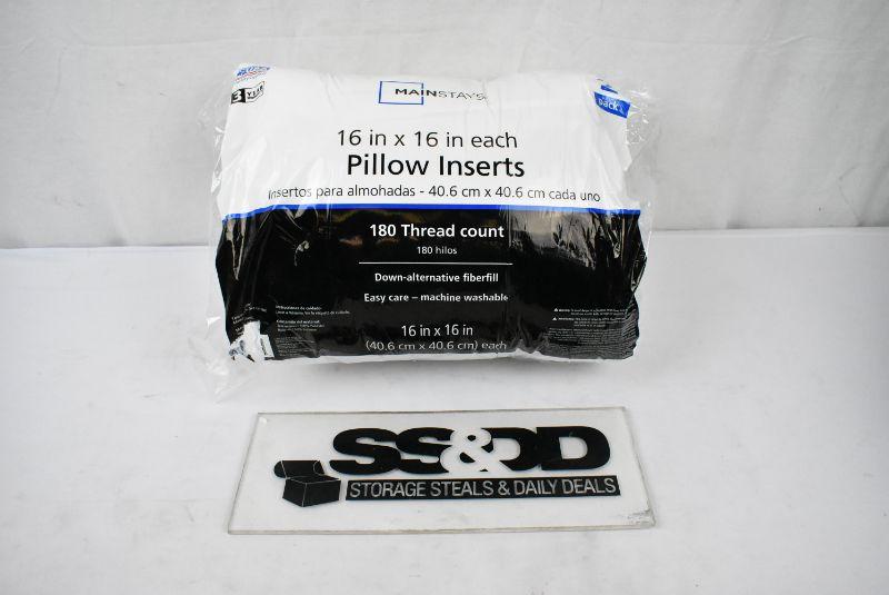 Mainstays Decorative Pillow Insert 100% Polyester 16" x 16" Set of 2 - New