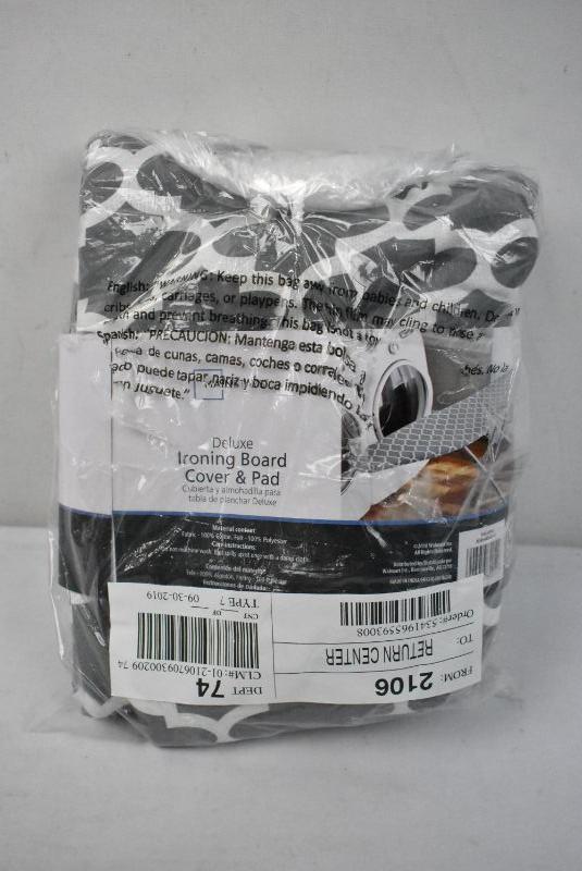 Mainstays Deluxe Iron Board Cover and Pad, Gray/White - New