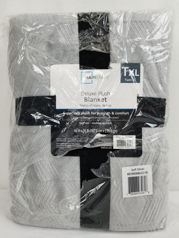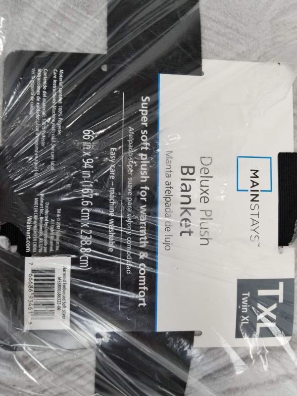 Mainstays Deluxe Plush Blanket - Twin XL, Diamond Embossed Soft Silver - New
