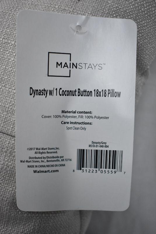 Mainstays Dynasty Coconut Button Accent Decorative Throw Pillow, 18" x 18", Gray - New