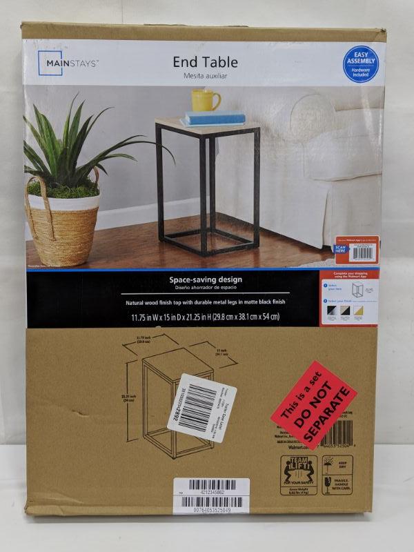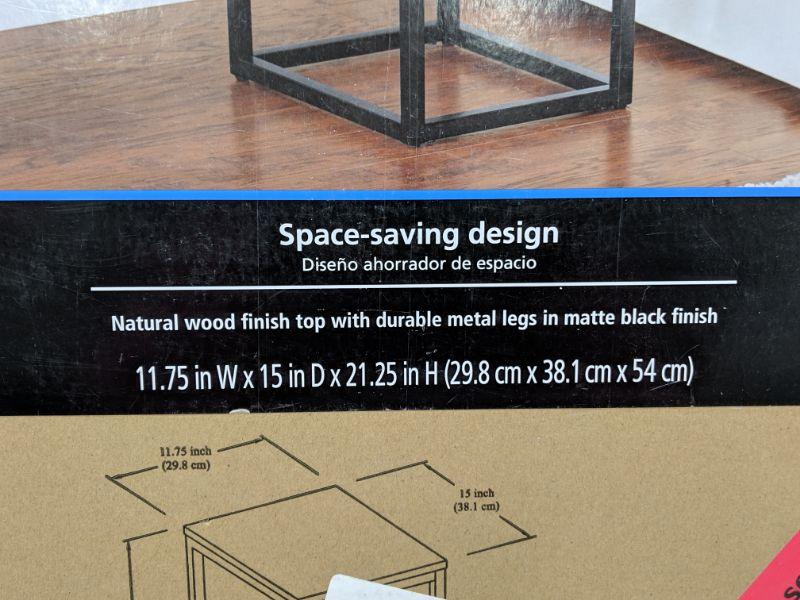 Mainstays End Table 11.75 x 15 in x 21.25 in - New