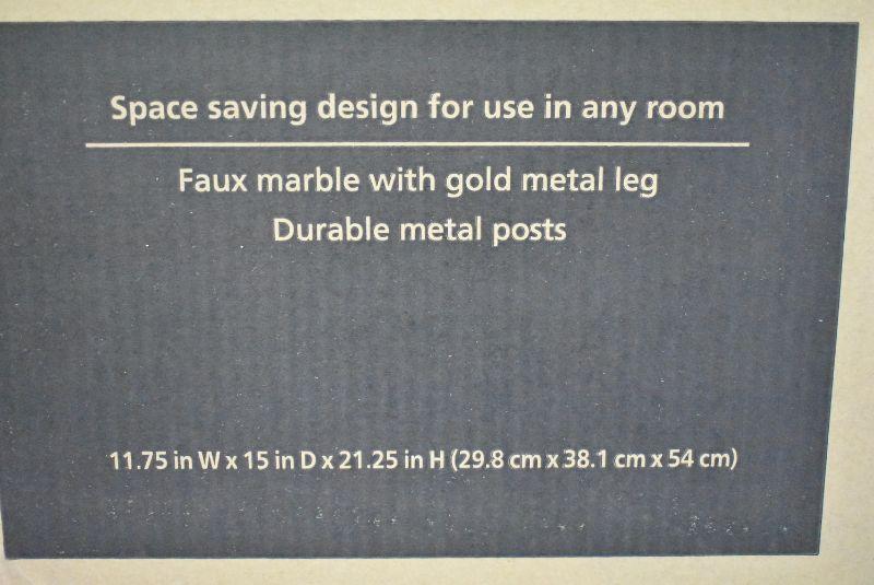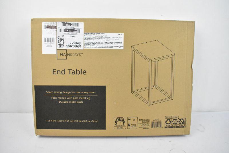 Mainstays End Table 11.75" x 15" x 21.25" Faux Marble with Gold Metal Legs - New