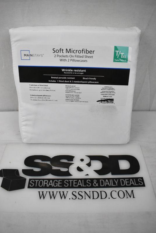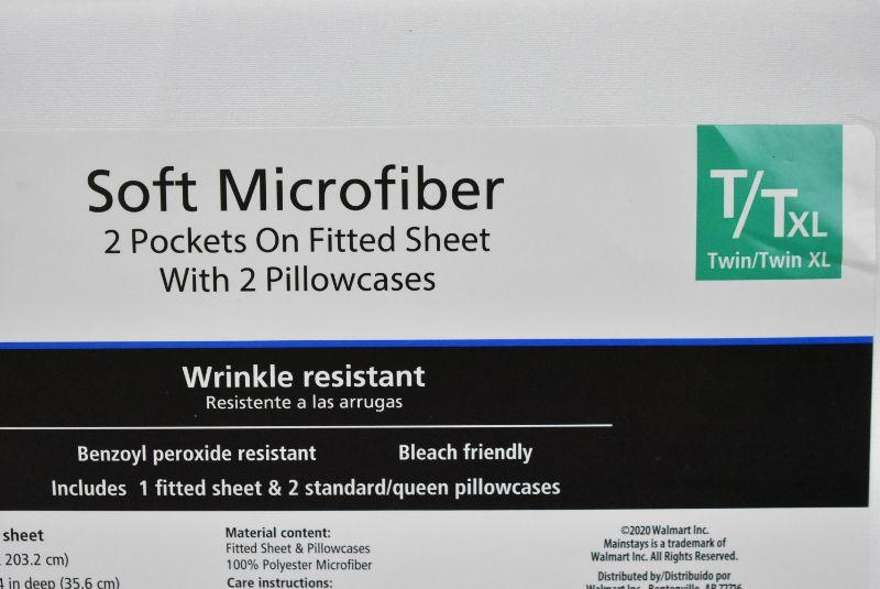 Mainstays Fitted Sheet with Pockets Set, Twin/Twin XL, Arctic White - New