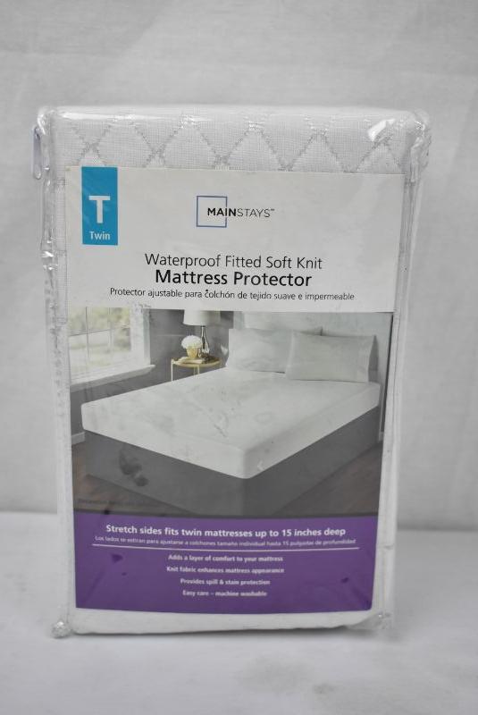 Mainstays Fitted Waterproof Soft Knit Mattress Protector, Twin - New, $25 Retail