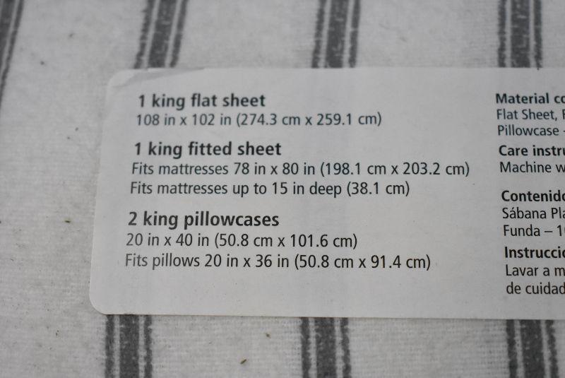Mainstays Flannel Sheet Set, King Size, 100% Cotton White with Gray Stripes - New