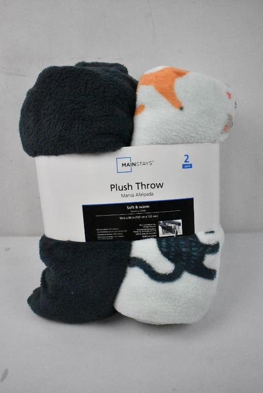 Mainstays Fleece Plush Throw Blanket, 50" x 60", 2-Pack: Gray & Cats - New