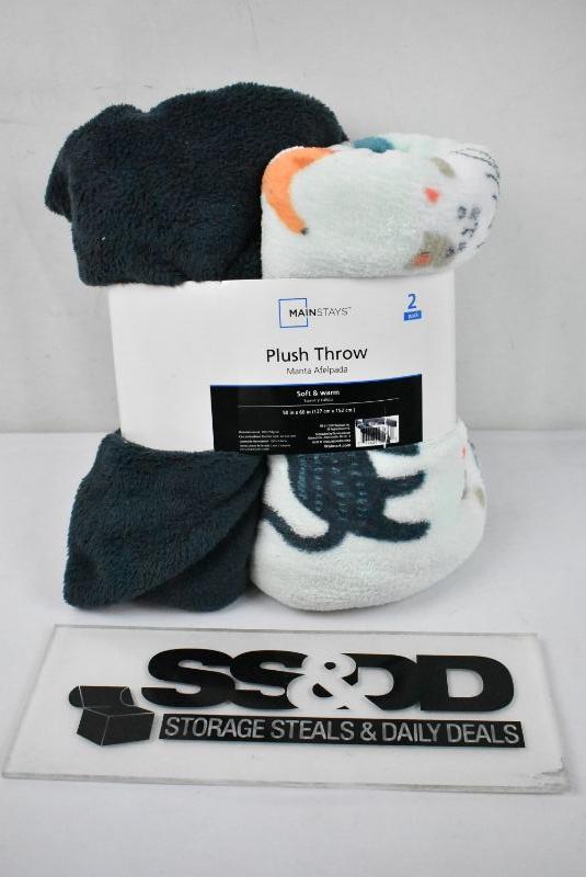 Mainstays Fleece Plush Throw Blankets, 50" x 60", 2-Pack: Gray & Cats - New