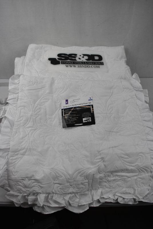 Mainstays Floral Quilted Bedspread with Long Dust Ruffle, King, Arctic White