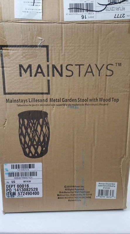 Mainstays Forest 18" Gray Metal Garden Stool with Wood Top - New