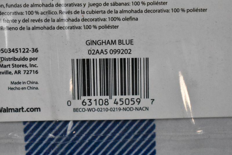 Mainstays Gingham Blue 8 Pc Duvet Cover/Sheet/Pillow Set - New