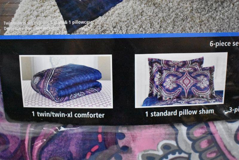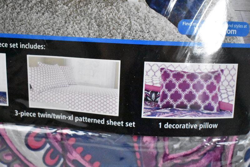 Mainstays Grace Medallion Purple Bed in a Bag Complete, Twin/Twin XL - New