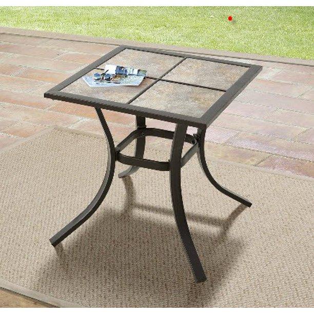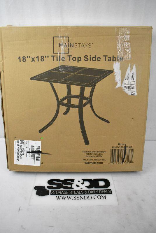 Mainstays Heritage Park outdoor patio side table 18" x 18" previously assembled. Small Chip on 1 tile