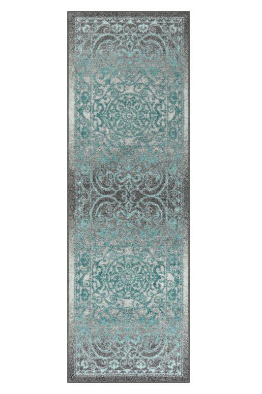 Mainstays India Medallion Textured Runner Rug, Gray/Blue, 2'x6' Runner - New