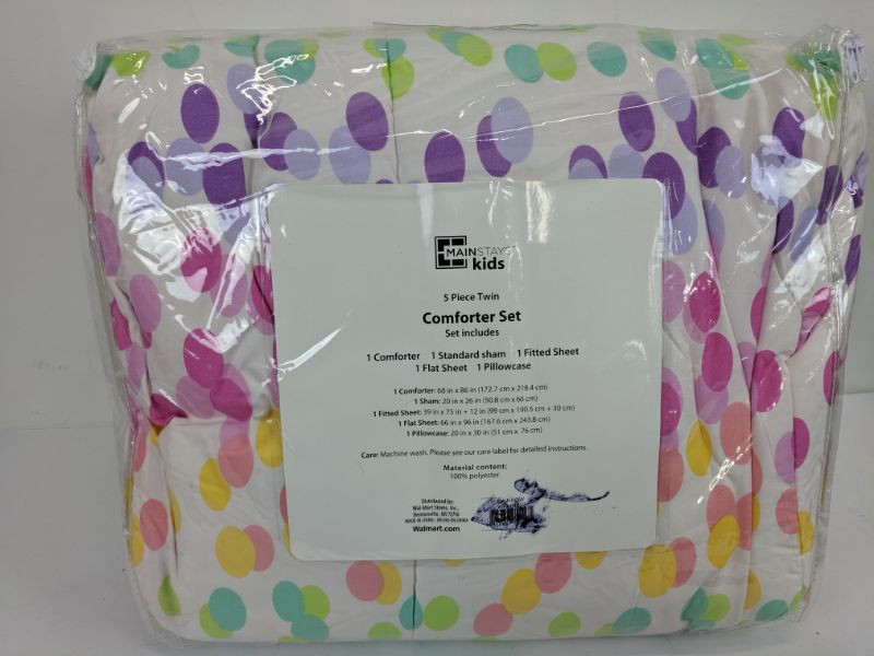 Mainstays Kids 5 Piece Twin Comforter Set, Colorful Dots - New