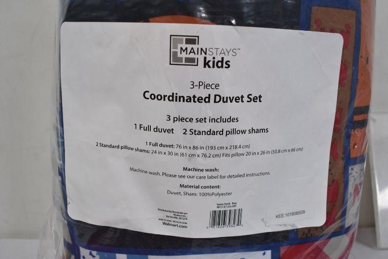 Mainstays Kids Coordinated Duvet Set: 1 Full Duvet, 2 Pillow Shams, Sports Patch Blue, $30 Retail - New