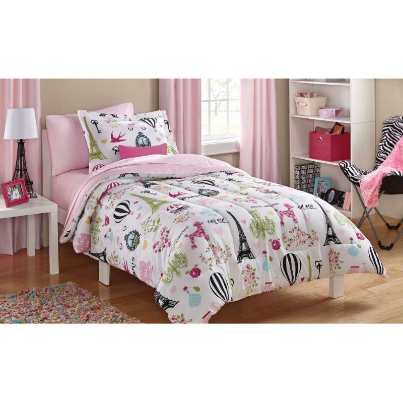 Mainstays Kids Paris Bed in a Bag Coordinating Bedding Set, Twin Size, Paris Theme, $30 Retail - New