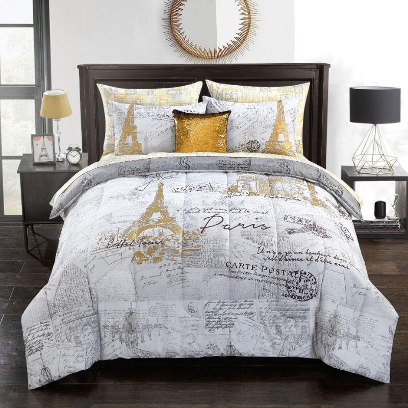 Mainstays Kids Paris Love Bed in a Bag Kids Bedding Set, 6 Pieces - New