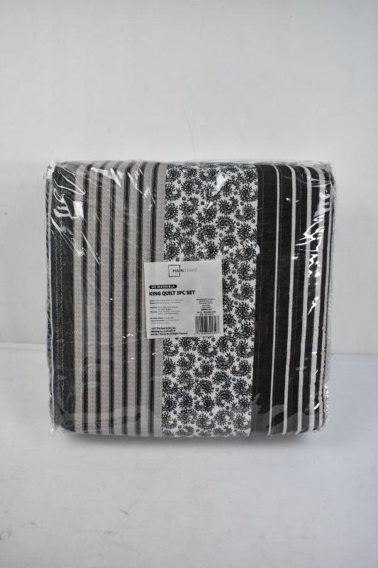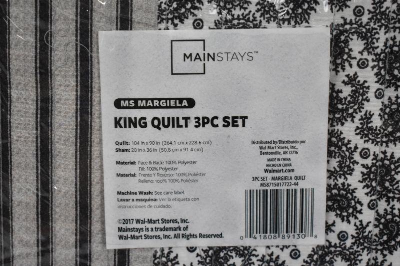 Mainstays King Quilt 3 Piece Set: Cream, Tan, Black, and Accent Red - New