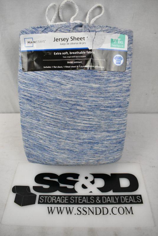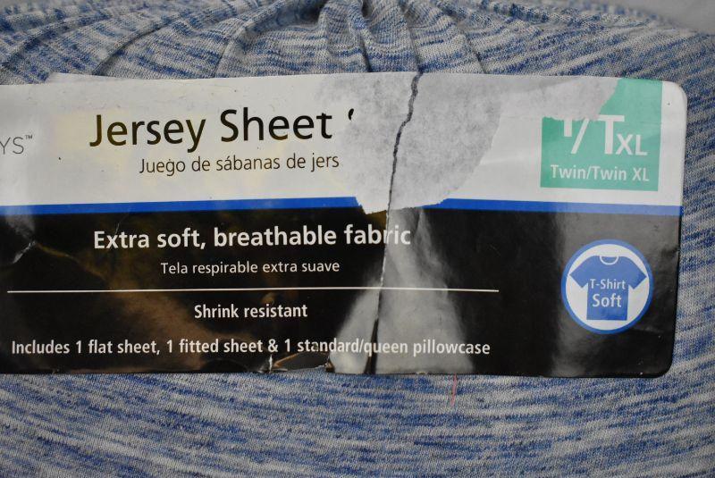 Mainstays Knit Jersey Bedding Sheet Set, T/TXL, Blue Space Dyed - New